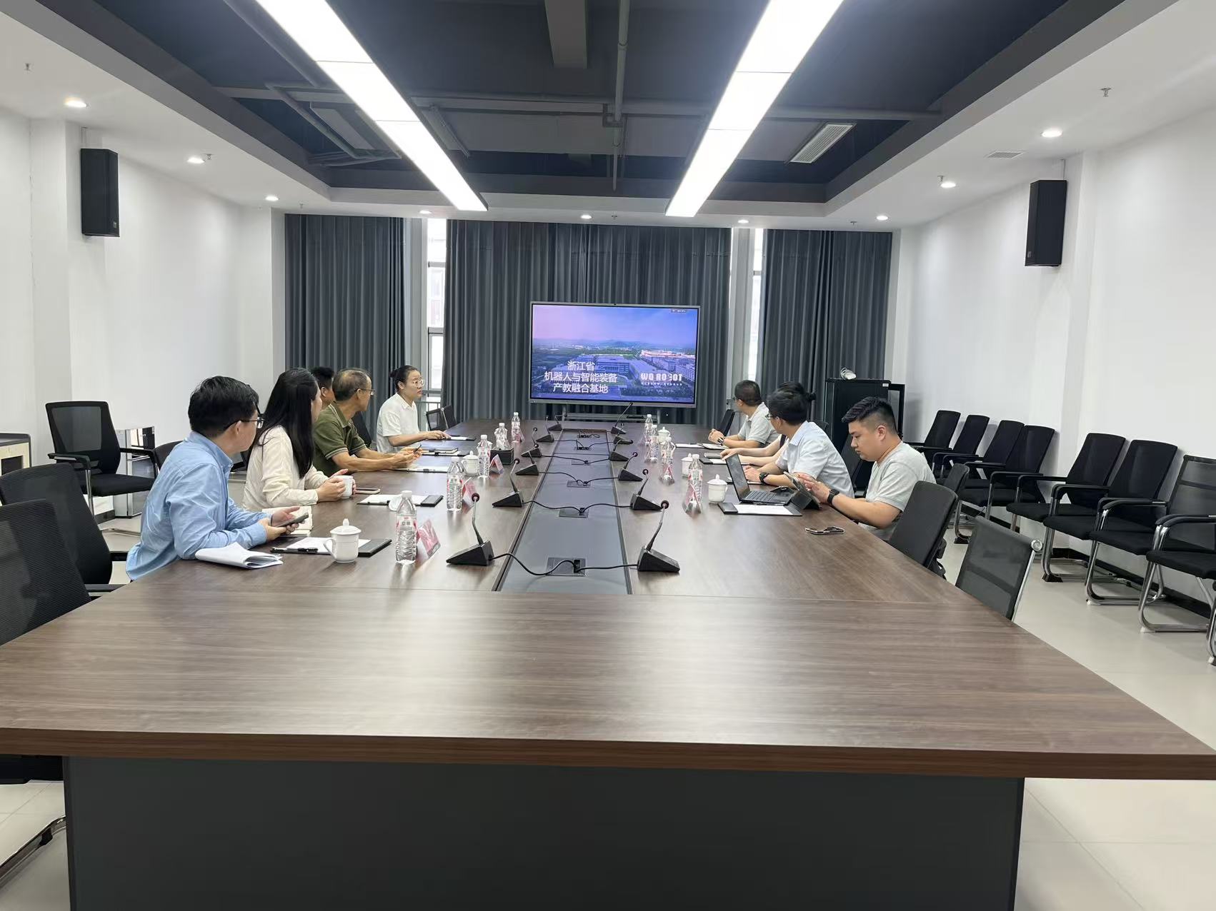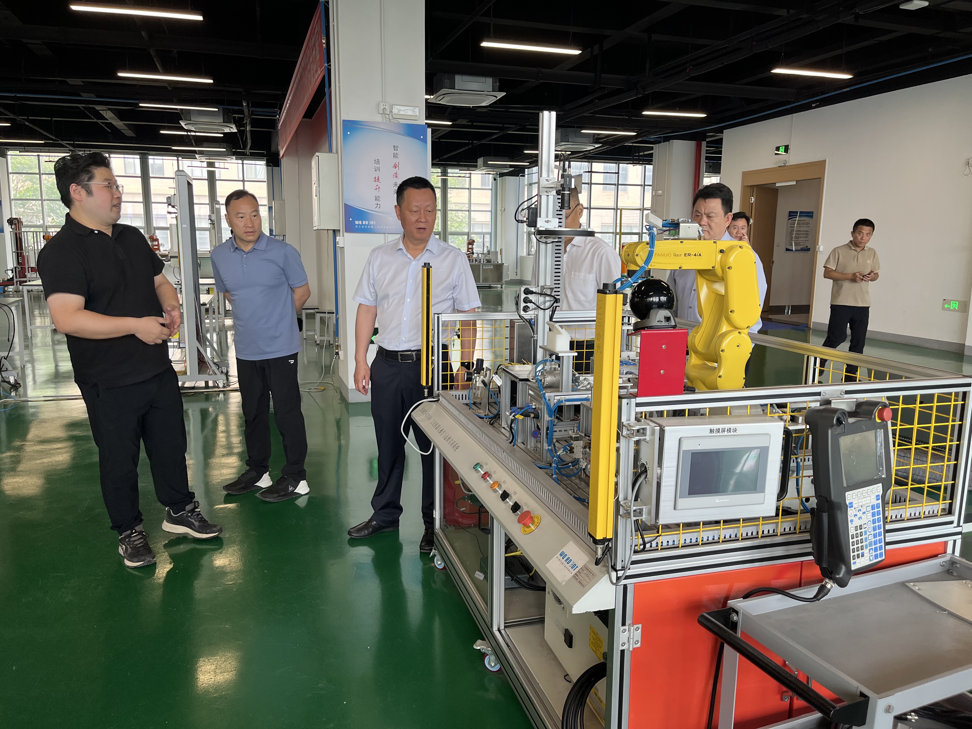 考察篇 5月14日,宁波市人大常委会教科文卫工委主任傅岳炳一行莅临浙江省机器人与智能装备产教融合基地(以下简称基地),实地考察产教